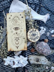Rachel enjoys working across a variety of mediums and is always excited to learn something new. Acrylic painting and wood burning are among her favorites—but she’s always exploring what’s next!